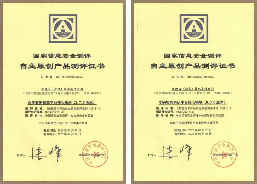 近日,醫(yī)渡科技(2158.HK)旗下醫(yī)渡云研發(fā)的“醫(yī)學(xué)數(shù)據(jù)智能平臺(tái)核心模塊(2.7.0版本)”、“專病智能科研平臺(tái)核心模塊(8.0.0版本)”(即專病庫),通過了中國信息安全測(cè)評(píng)中心測(cè)評(píng),獲得自主原創(chuàng)產(chǎn)品測(cè)評(píng)證書,成為首個(gè)通過該認(rèn)證的醫(yī)療科技產(chǎn)品。